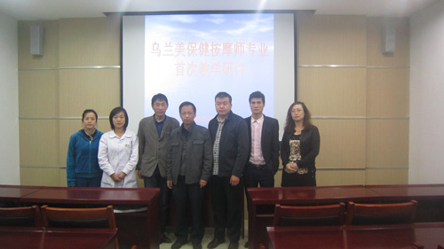 2014年5月14日下午,烏蘭美保健按摩第一次教學(xué)研討會在烏蘭美多媒體教室舉行,參會人員有天行健養(yǎng)生會館總經(jīng)理韓澤明、店長成偉周、培訓(xùn)師王秀美,烏蘭美副總經(jīng)理袁秀林、教務(wù)處負(fù)責(zé)人聶彥霞及保健按摩專業(yè)教師孫正捷、王俊芬。